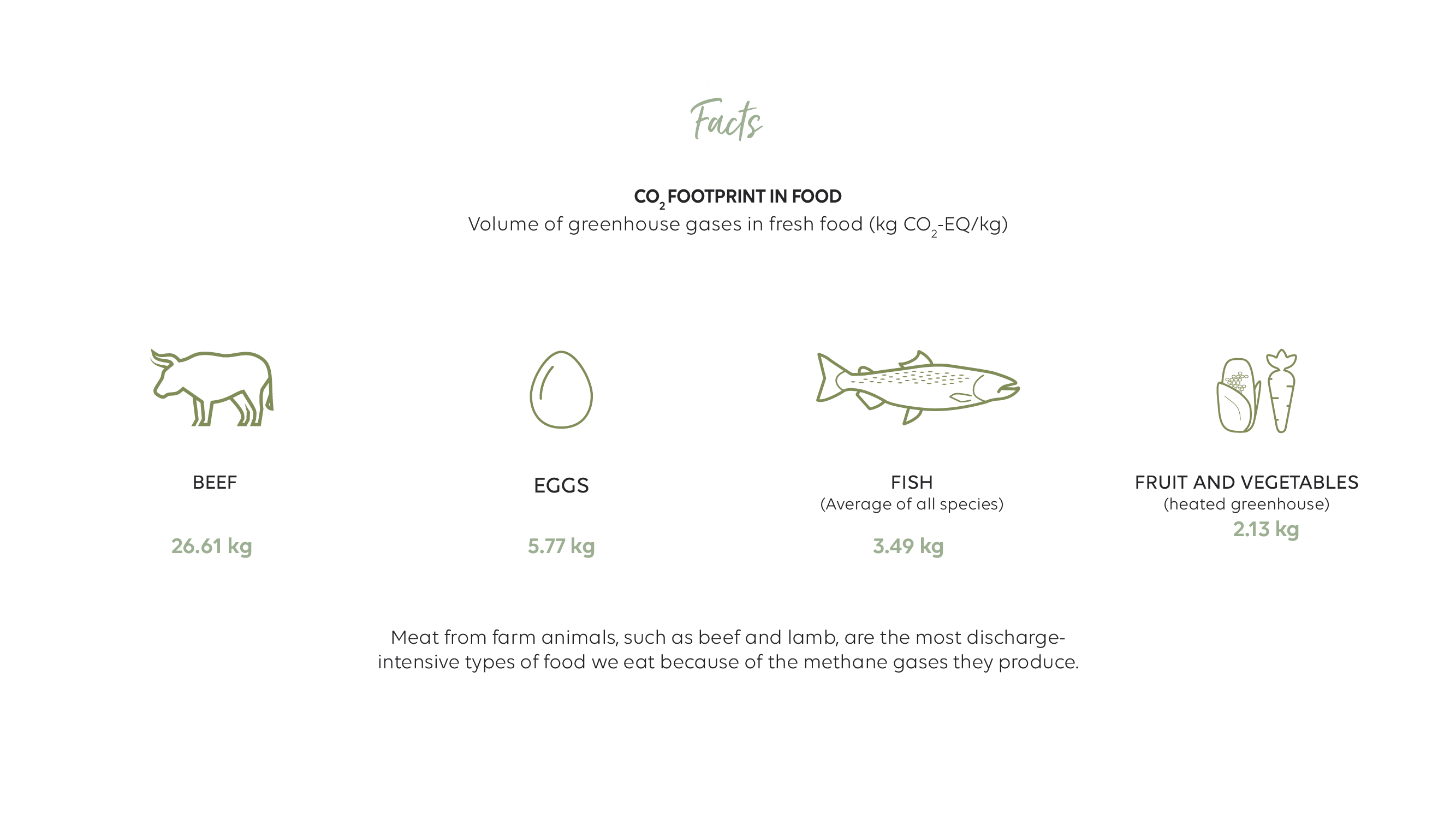 CO2e emissions for fish are in general low. When compared with other types of proteins we eat, salmon has the lowest eco-footprint.