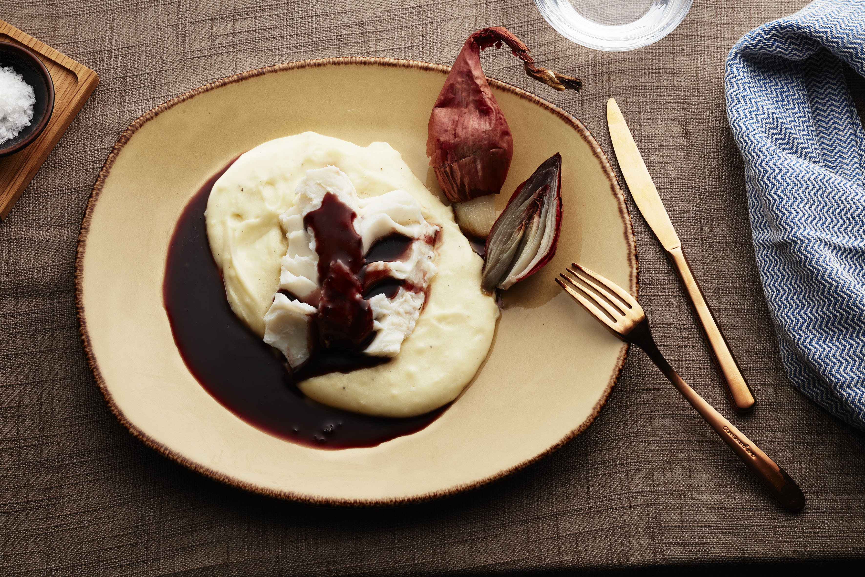 Brandade is a fluffy mashed potato dish with garlic stirred together with clipfish and olive oil, however we made this version with lightly salted cod.