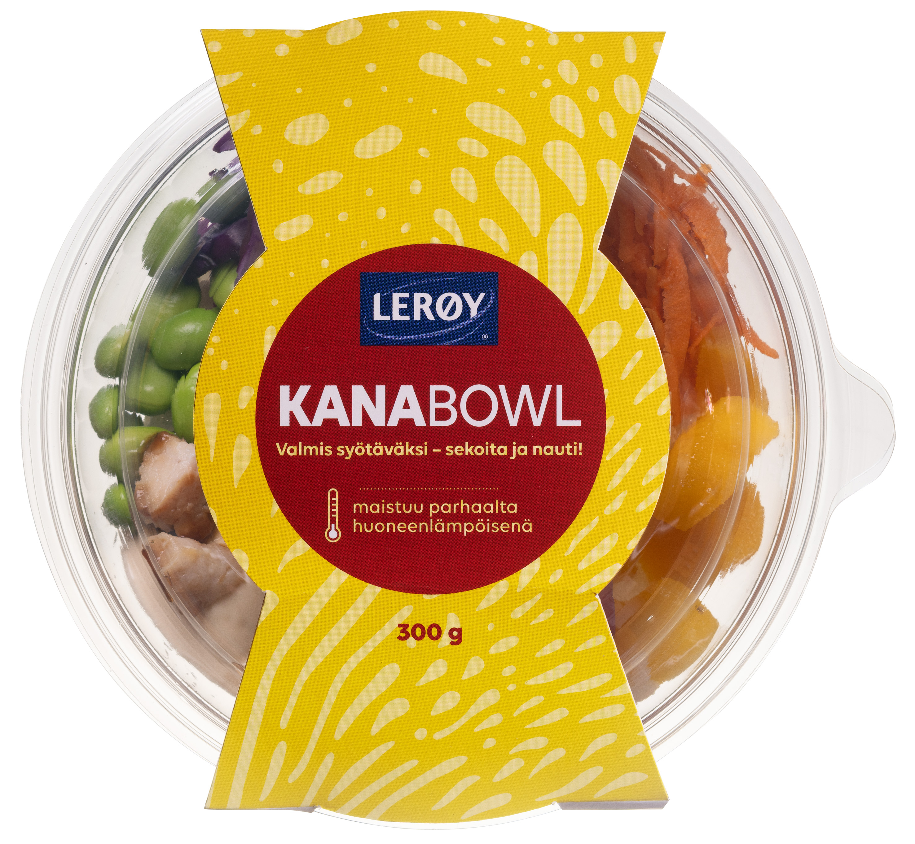 Kanabowl koostuu sushiriisistä, kypsästä kanasta, porkkanasta, punakaalista, edamame-soijapavuista, marinoidusta punasipulista, mangosta sekä herkullisesta itse valmistetusta teriyakimajoneesista, joka sitoo maut yhteen.