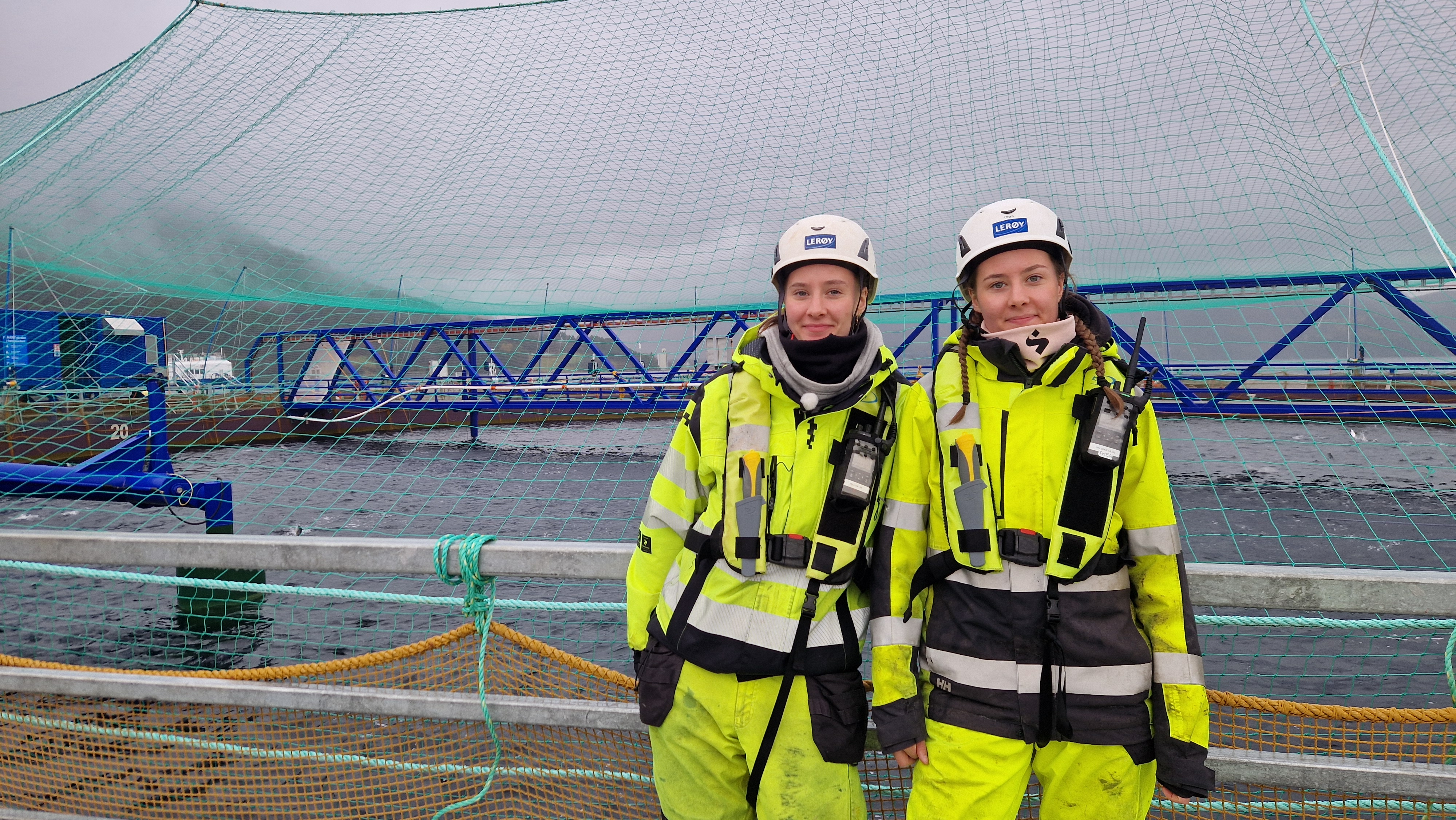 Lerøy har investert stort i ny skjermingsteknologi for å bedre fiskevelferden. Denne satsingen krever både ny teknologi og dyktige ansatte – og på lokalitetene i Halsa finner vi mange som bidrar, blant dem tvillingene Thea og Oda Lervåg Stokke.