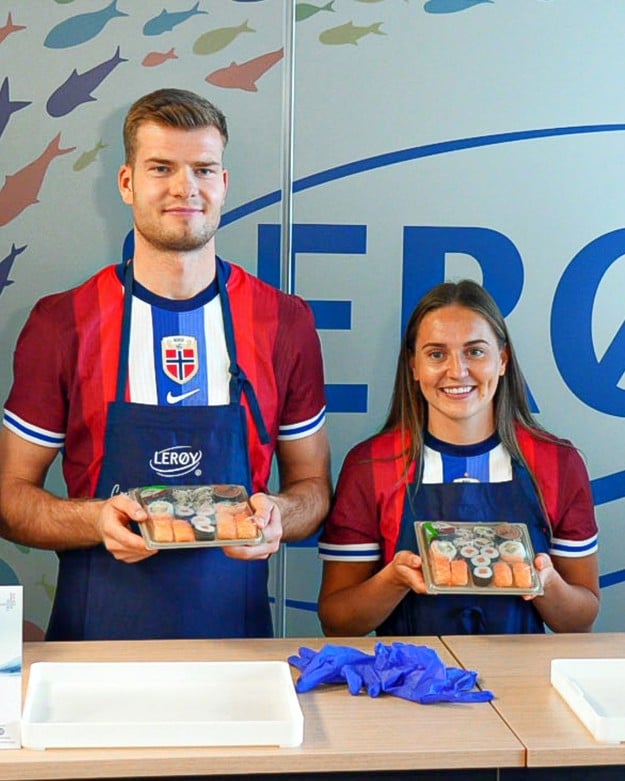 Som en del av Seafood from Norway-samarbeidet med Norges Fotballforbund og landslagene, fikk Lerøy i 2025 besøk av Norges sjømatråd og landslagsspillerne Vilde Bøe Risa og Alexander Sørloth ved vårt prosesseringsanlegg i Madrid.