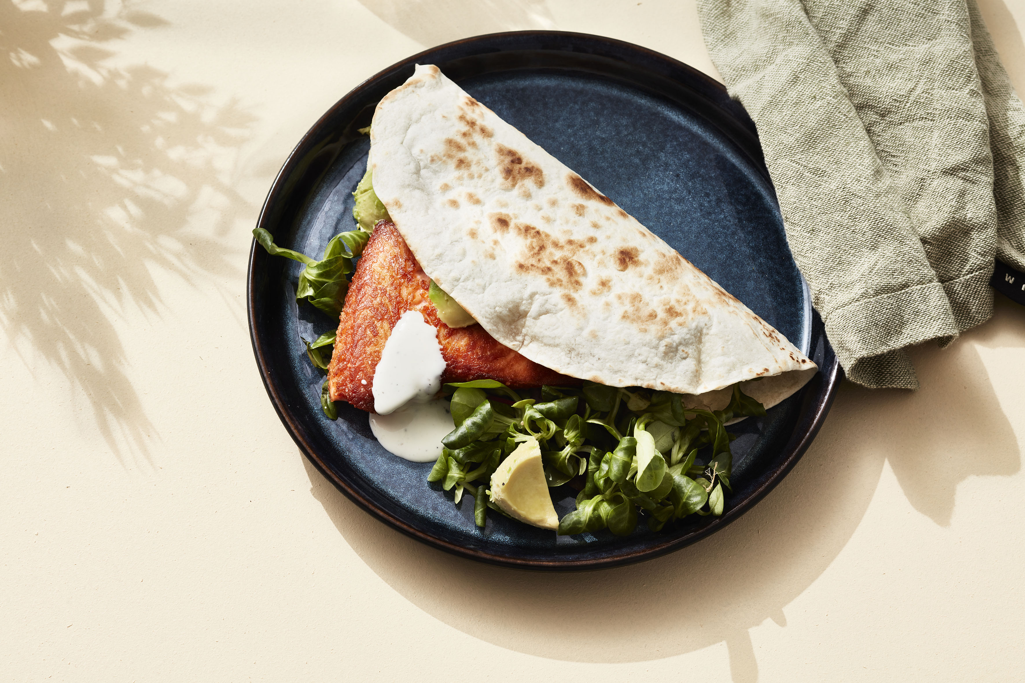 7. Dette er en kjempeenkel og barnevennlig tortilla med ørret (kan byttes ut med laks), avokoado og rømme som gir kjempebra påfyll av energi. Denne hjemmelagde rømmedressingen er alene verdt forsøket!