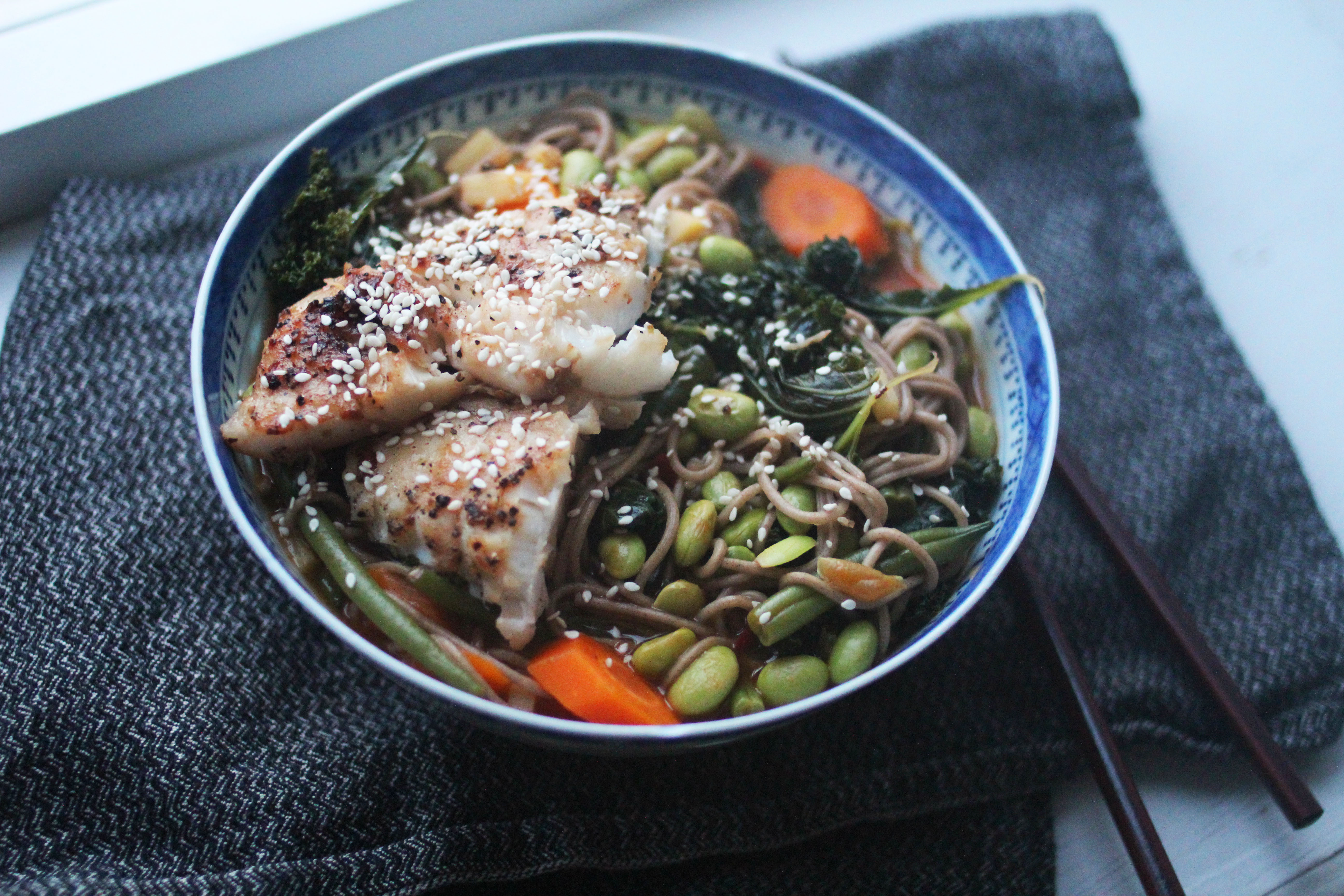 2. Ramen er en japansk nudlerett med mye smak. Mange serverer den tradisjonelt med ribbe, men her får du en nydelig variant med torsk, ingefær og sesamfrø.