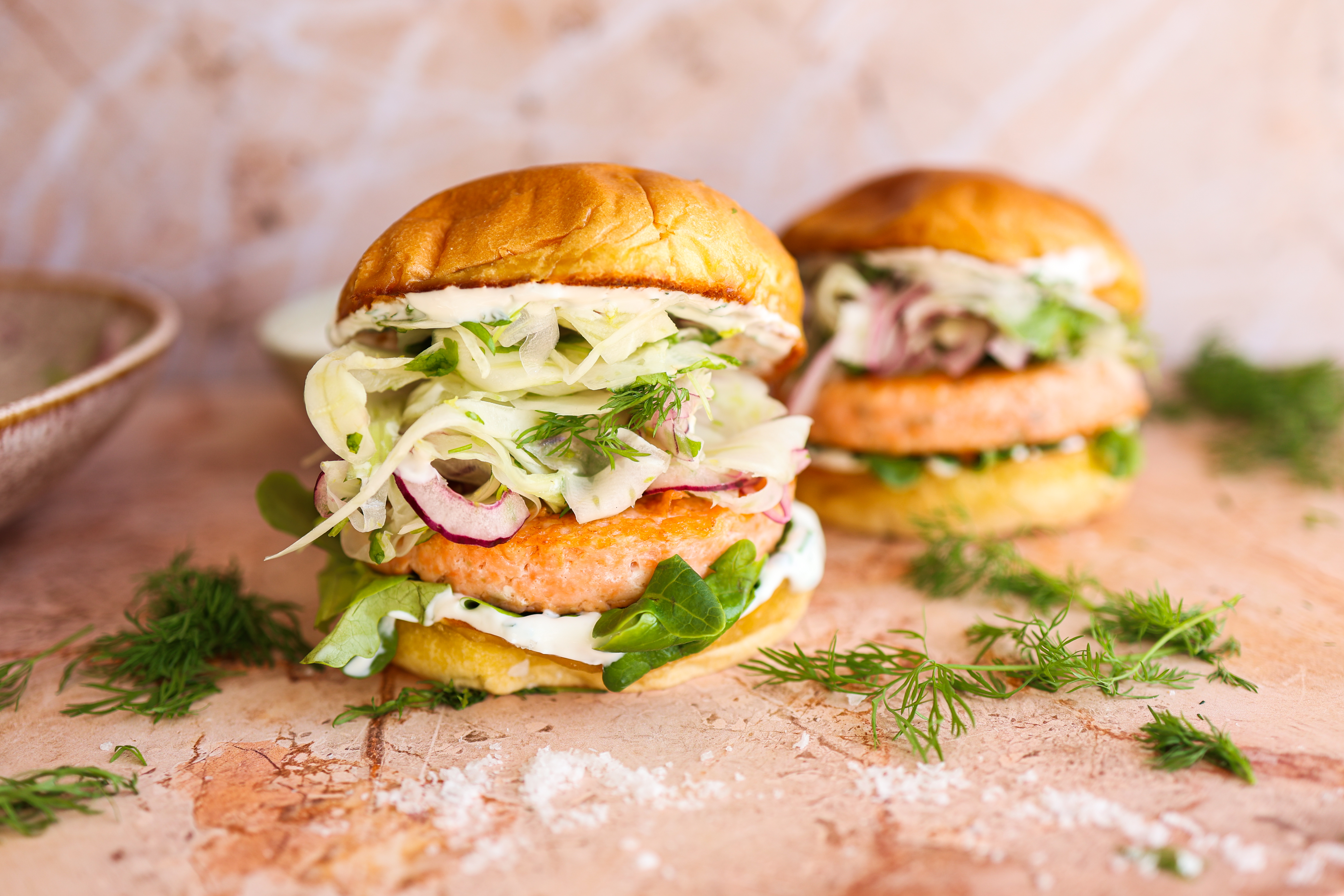 - Ta laksen ut og vask pannen kjapt før du har i 2 ss olivenolje og 1 ss smør og steker ingefær og hvitløk i et par min.