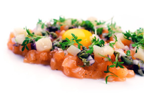 - Legg risen nederst i en bolle. Topp med grønnsaker og laks. Ha koriander og litt limesaft over til slutt.