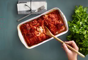 3. Hell alt over i en ildfast form og sett det hele i stekeovnen i cirka 20 minutter.