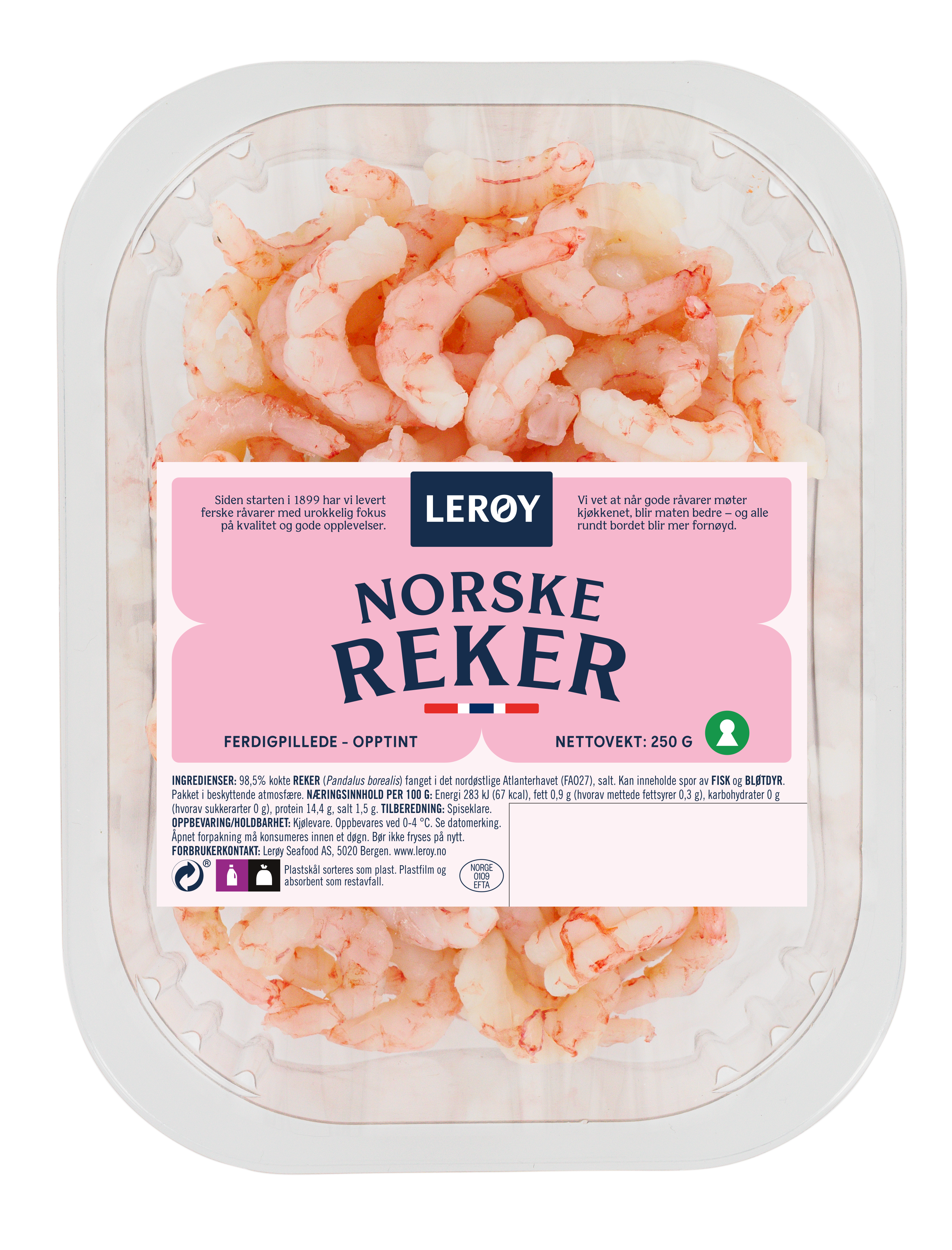 3. Tilsett rekene og korianderen i salaten og hell over rømmeblandingen. Vend det hele til salaten er blandet og server.