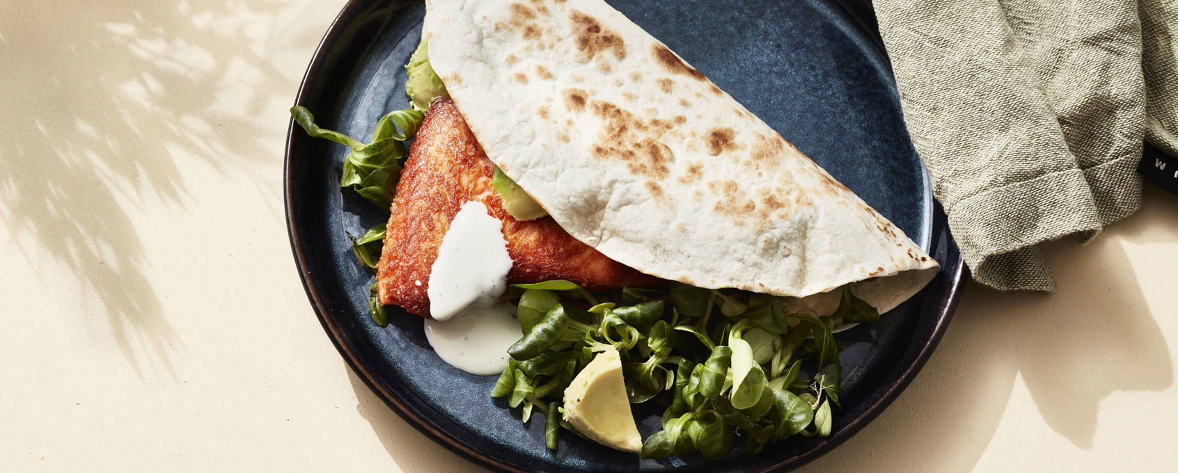Fremgangsmåte tortilla med ørretfilet, avokado og rømmedressing:
